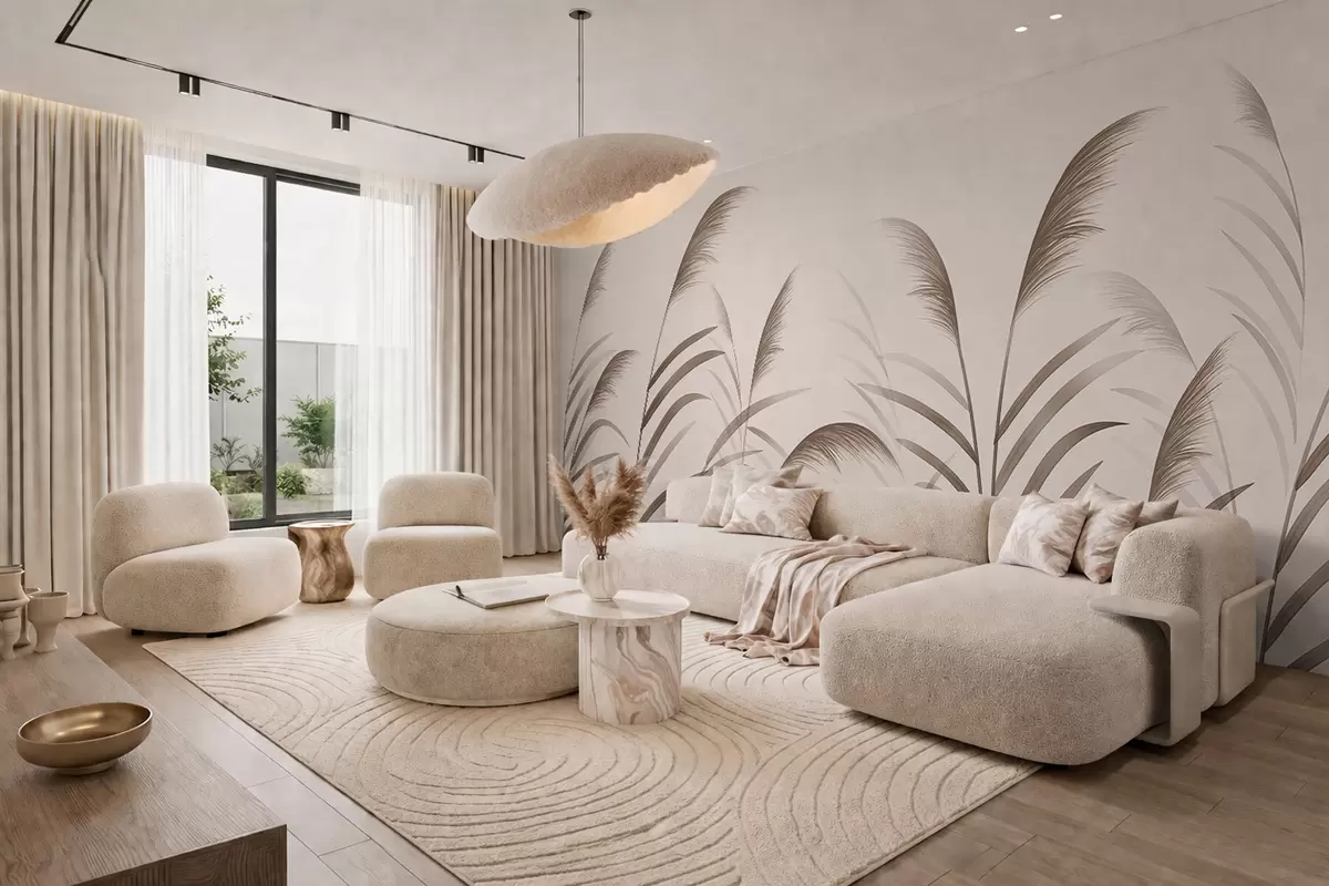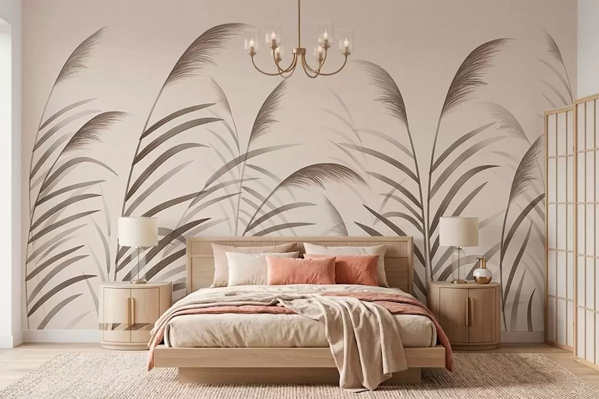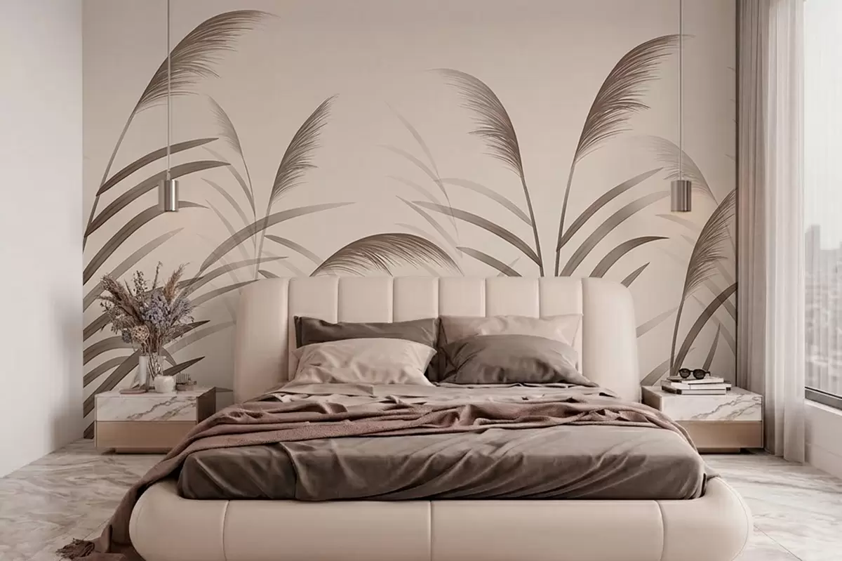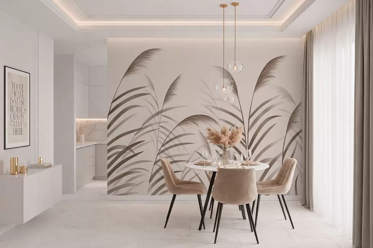 Fototapeten Minimalistische Schilfsilhouetten in Beigetönen N° w05432