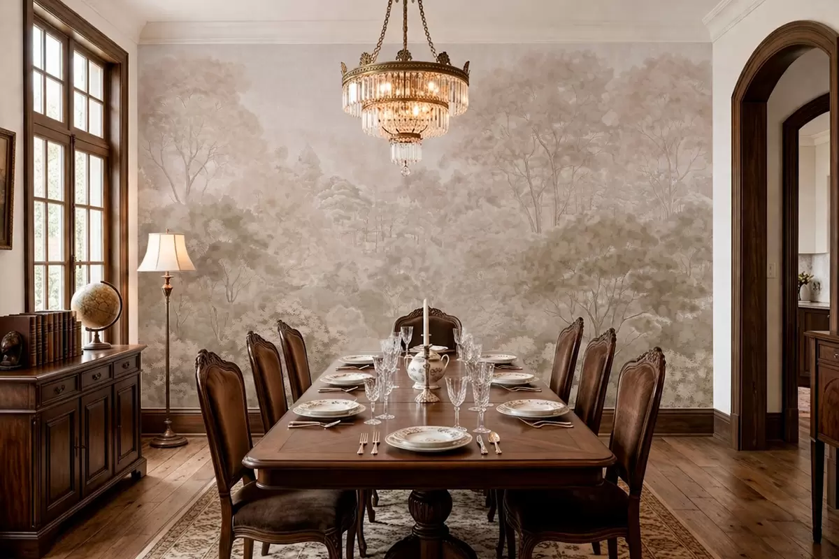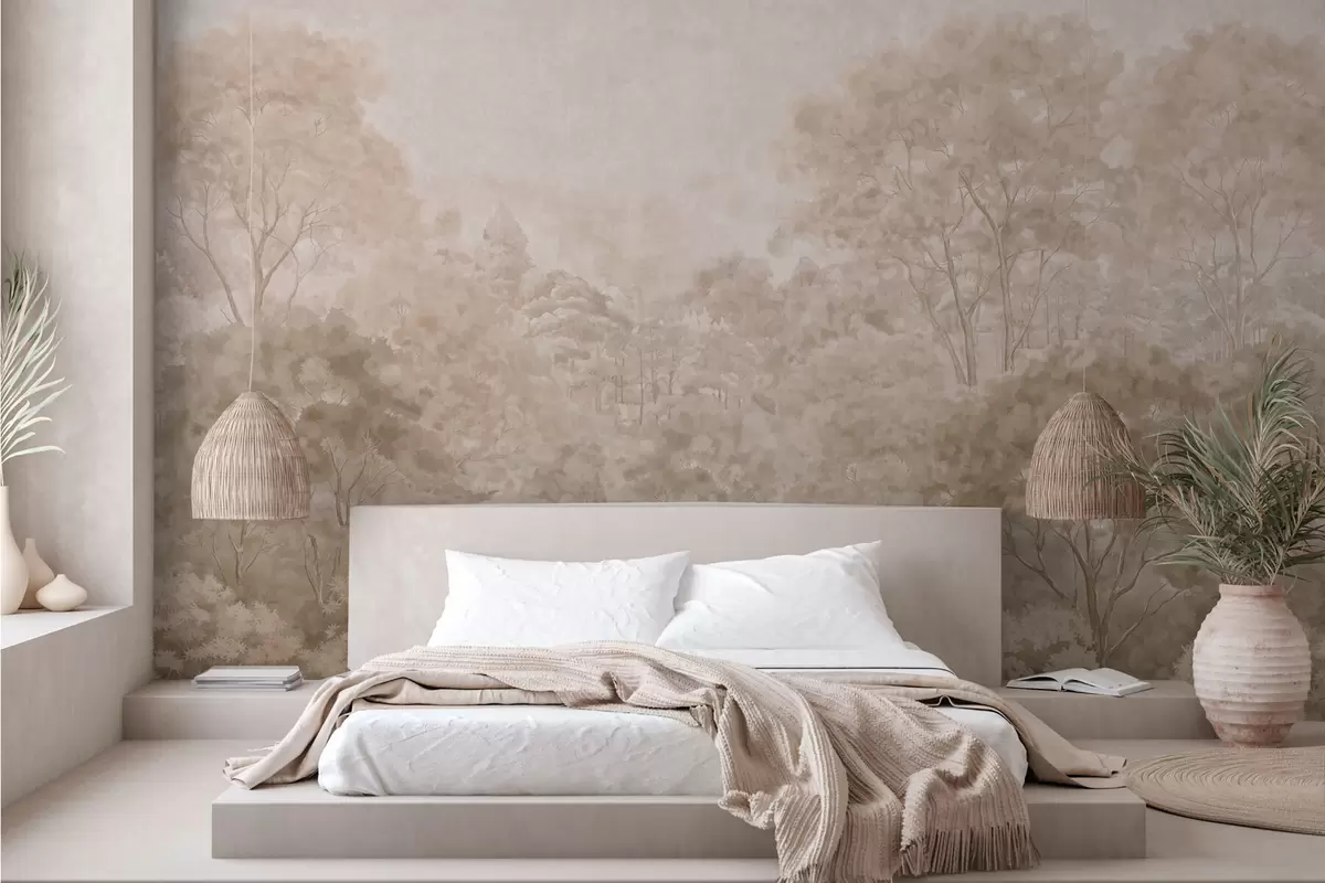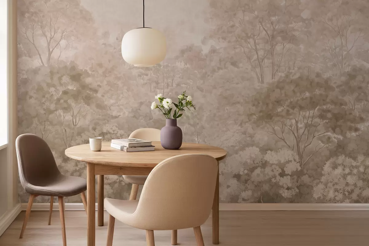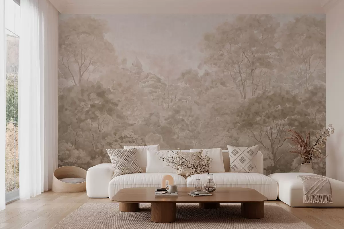Fototapeten Waldlandschaft im Vintage-Stil in warmen Beigetönen N° w05433v1