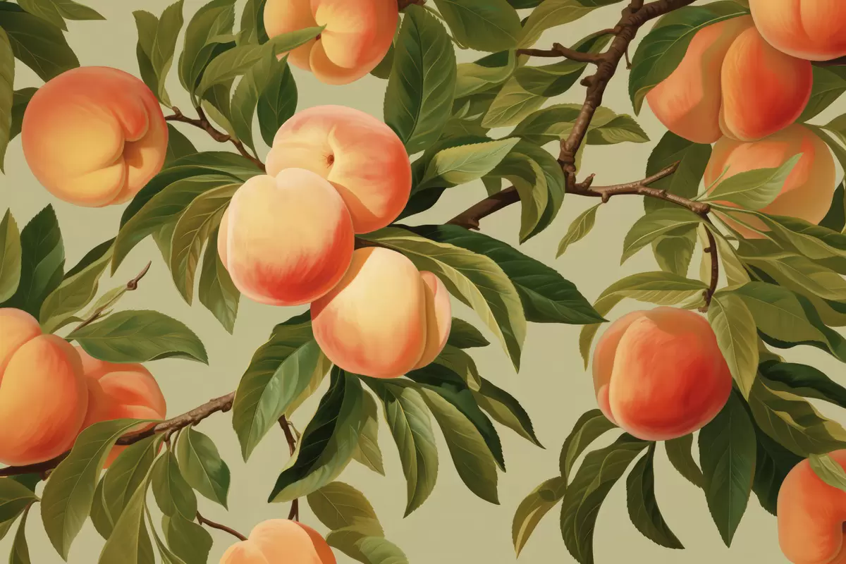 Fototapeten Reife Pfirsiche an den Zweigen N° w05444