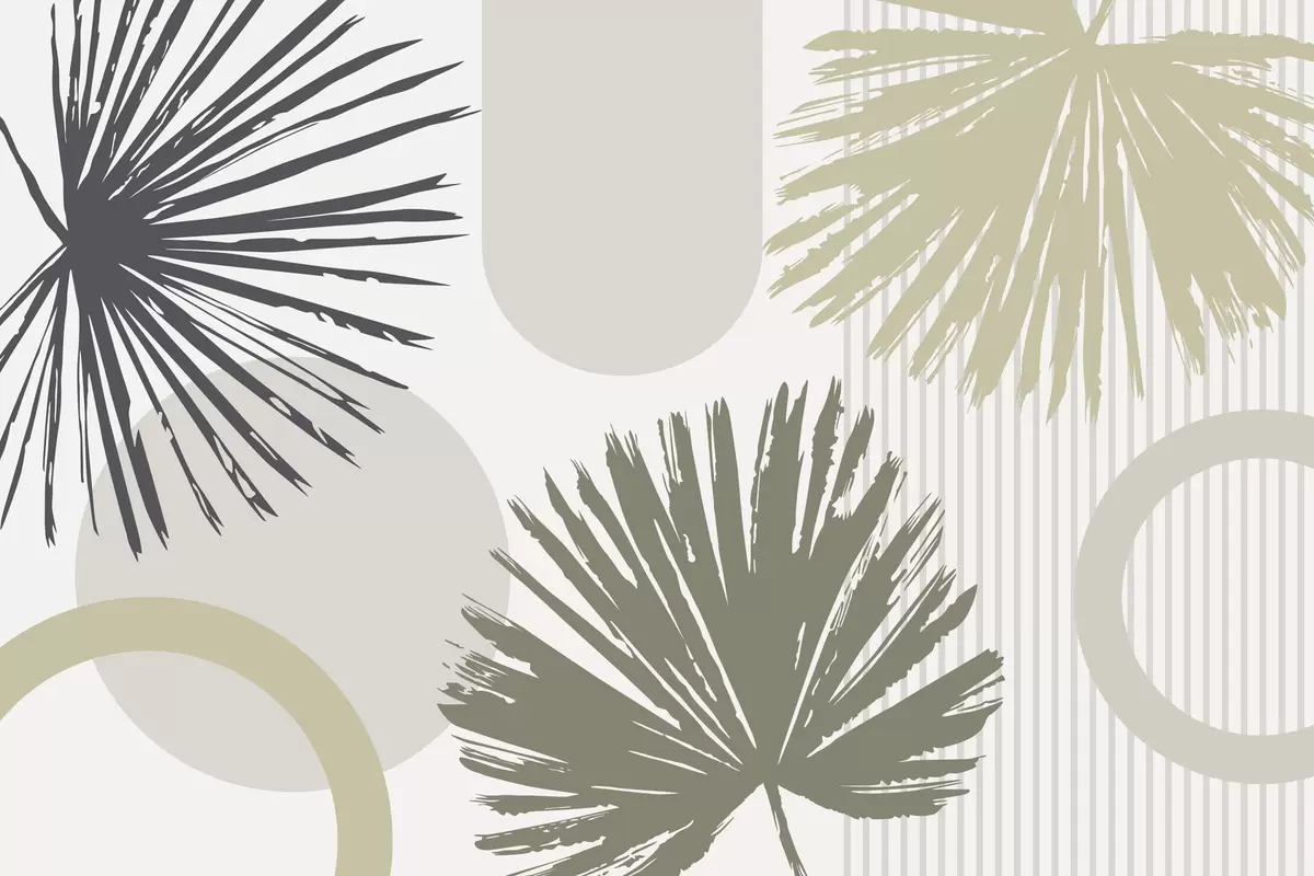 Fototapeten Abstraktion mit pflanzlichen und geometrischen Silhouetten N° w05505v2
