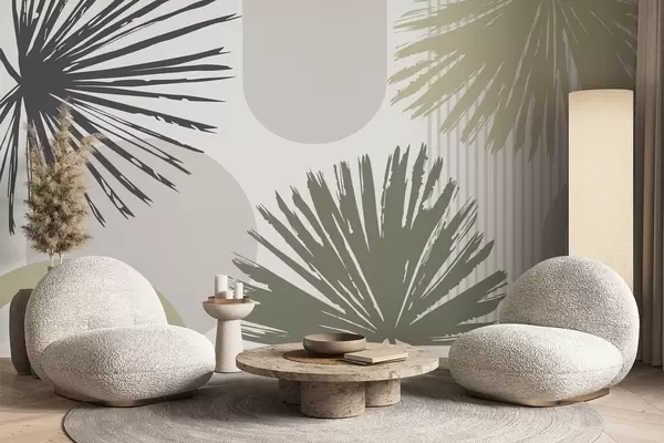 Fototapeten Abstraktion mit pflanzlichen und geometrischen Silhouetten N° w05505v2