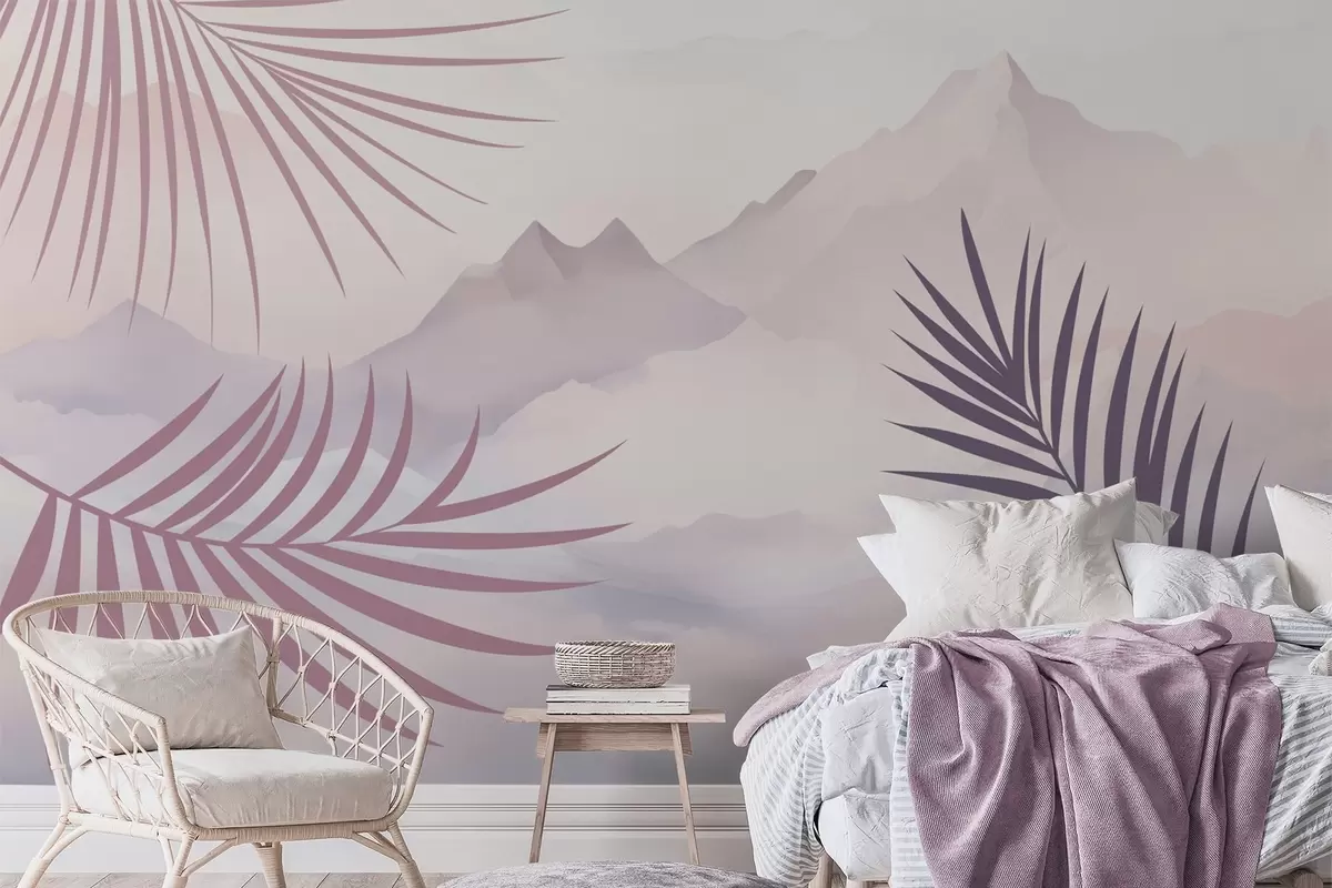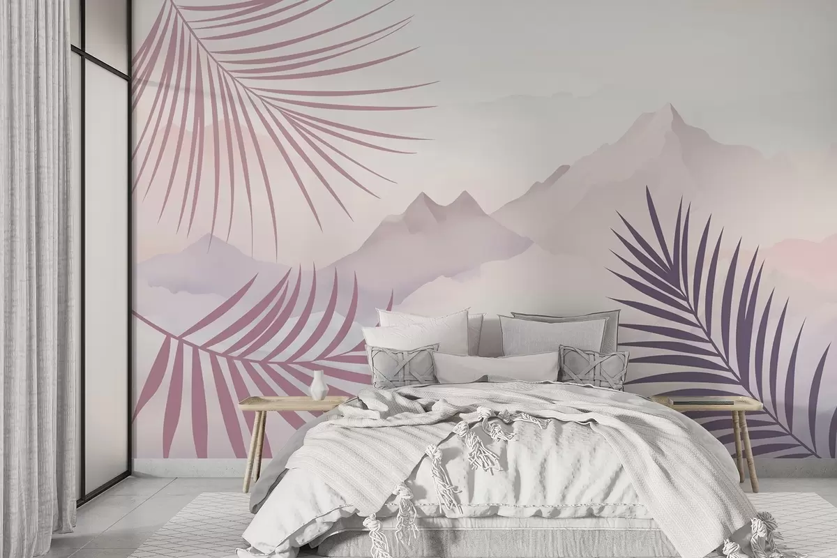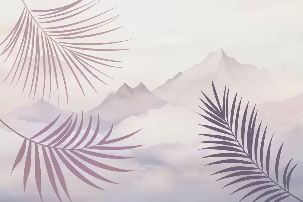 Fototapeten Palmblätter vor dem Hintergrund der Berge N° w05548v1