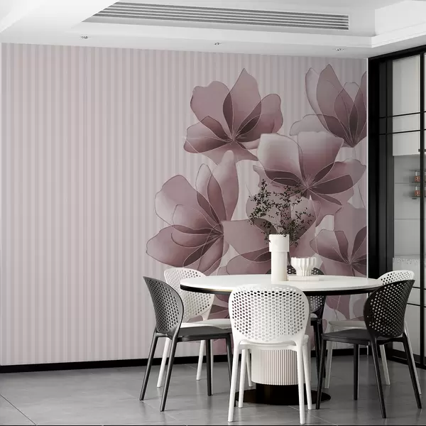 Fototapeten zarte rosa Blüten auf gestreiftem Hintergrund N° w08040v1