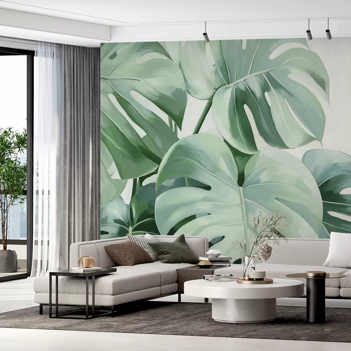 Fototapeten Grüne große Blätter der tropischen Monstera N° w08116