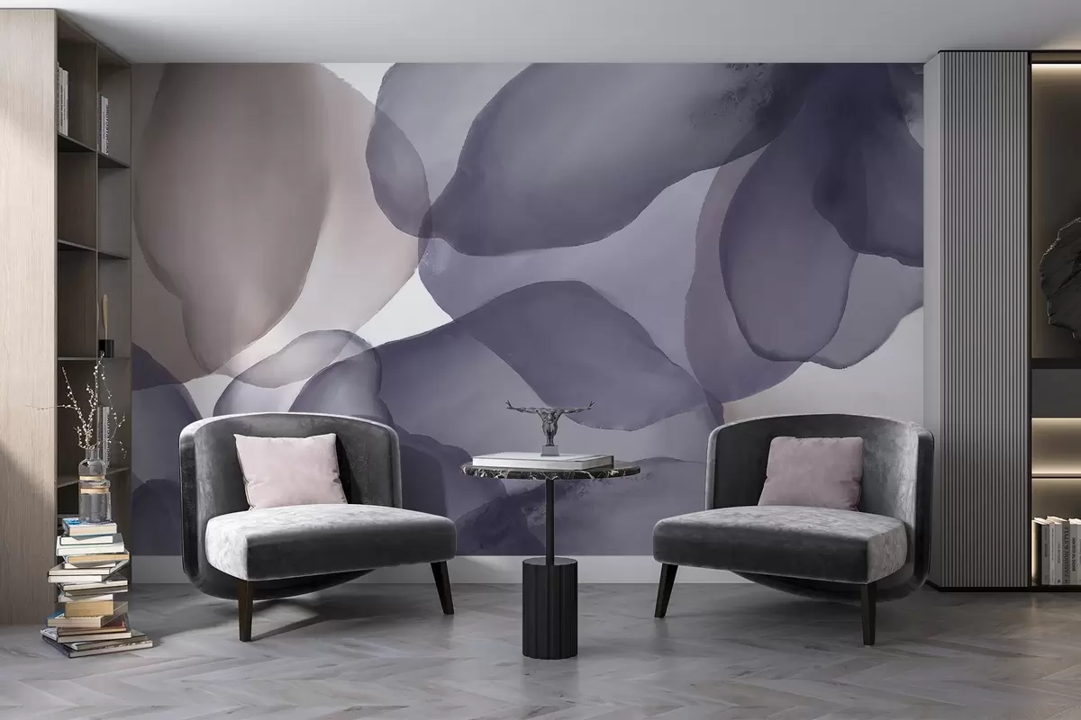 Fototapeten Abstrakte dunkelviolette und beigefarbene florale Formen, weiche und organische Formen mit einem Gefühl von Bewegung und Fließen N° w08381
