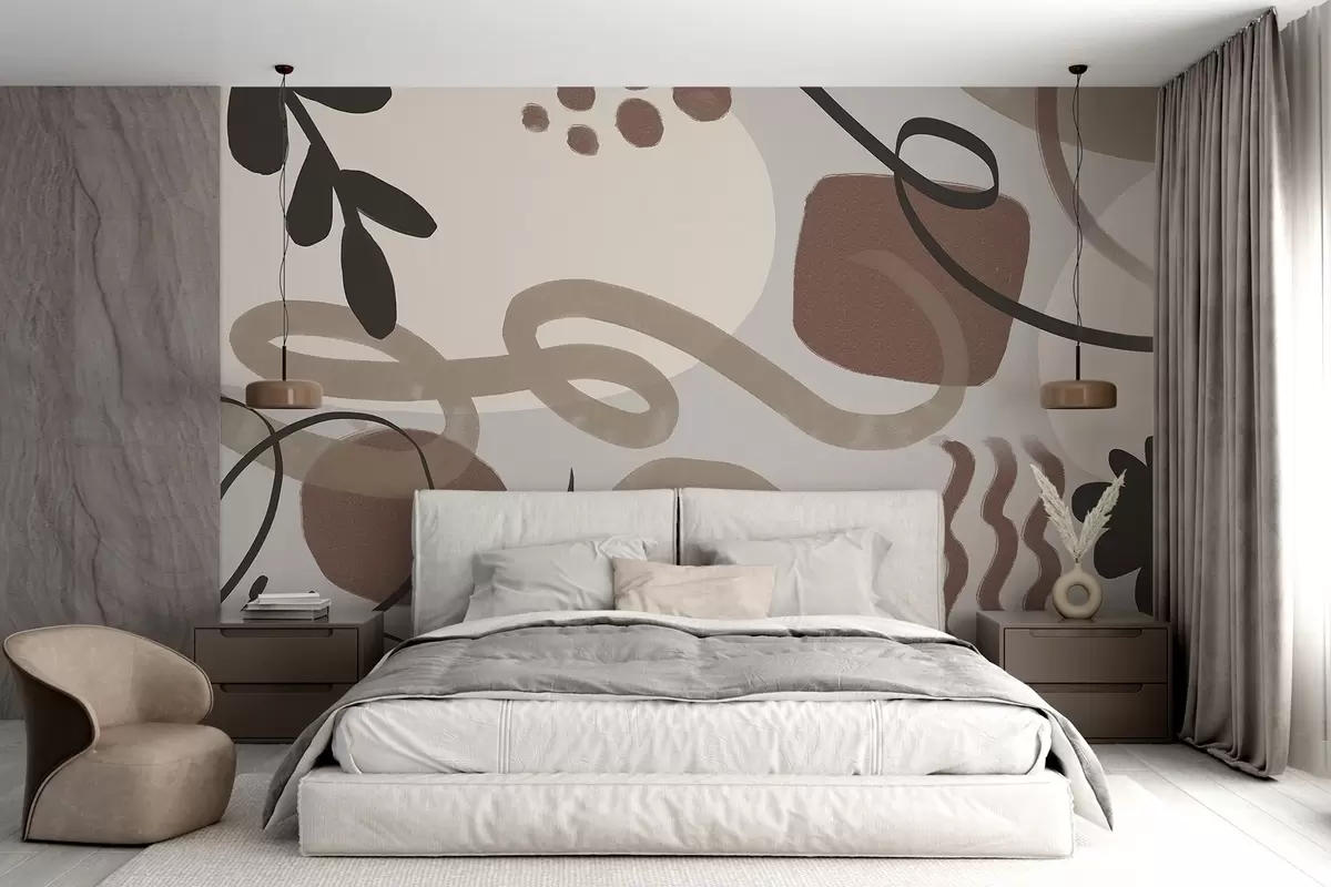 Fototapeten Abstrakter, strukturierter, minimalistischer, moderner Druck mit Formen in Erdtönen von Braun, Beige und Schwarz N° w08384