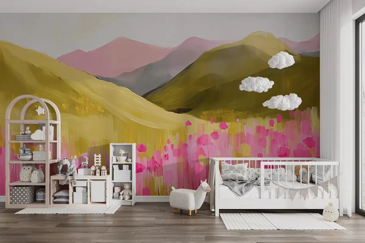 Fototapeten Rosa Blumen in den Bergen N° w08456