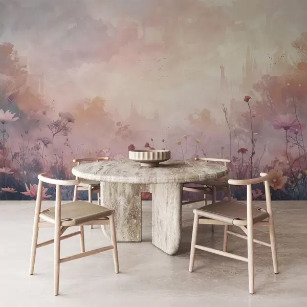 Fototapeten Wilde Blumen auf Schloss Silhouette Hintergrund N° w08478