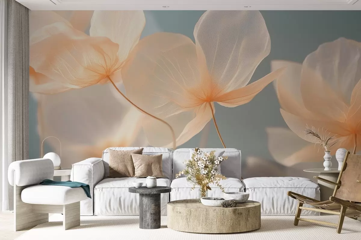 Fototapeten Lotusblüten, eine zarte Komposition mit blauem Hintergrund N° w08500