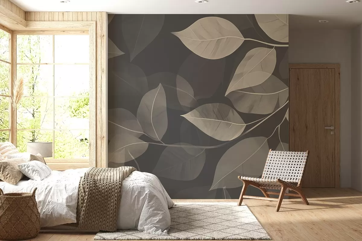 Fototapeten Zweige mit Blättern in Blau- und Grautönen N° w08502v1