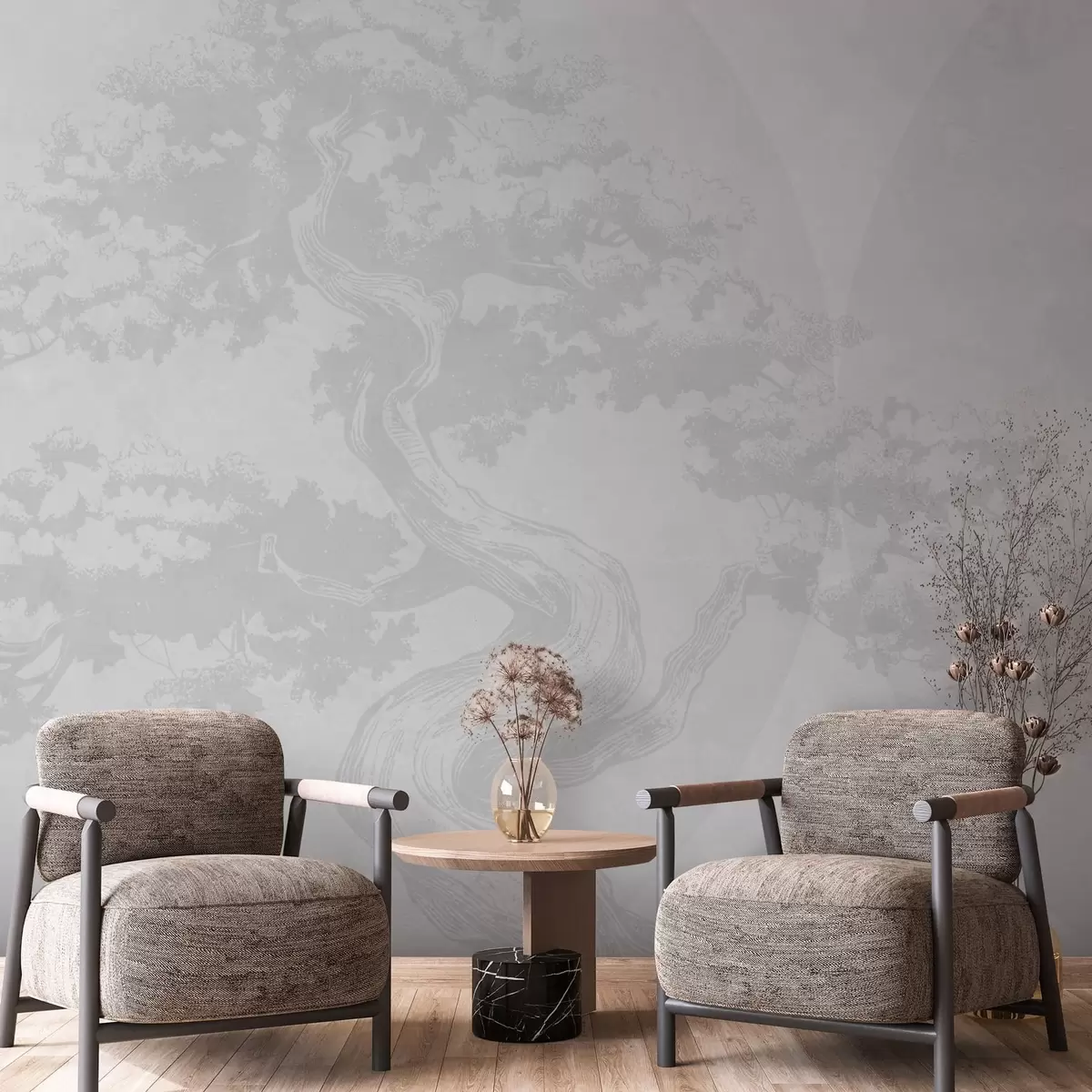 Fototapeten Bonsai-Baum Minimalismus Geometrie Grunge Hintergrund N° w08557v1