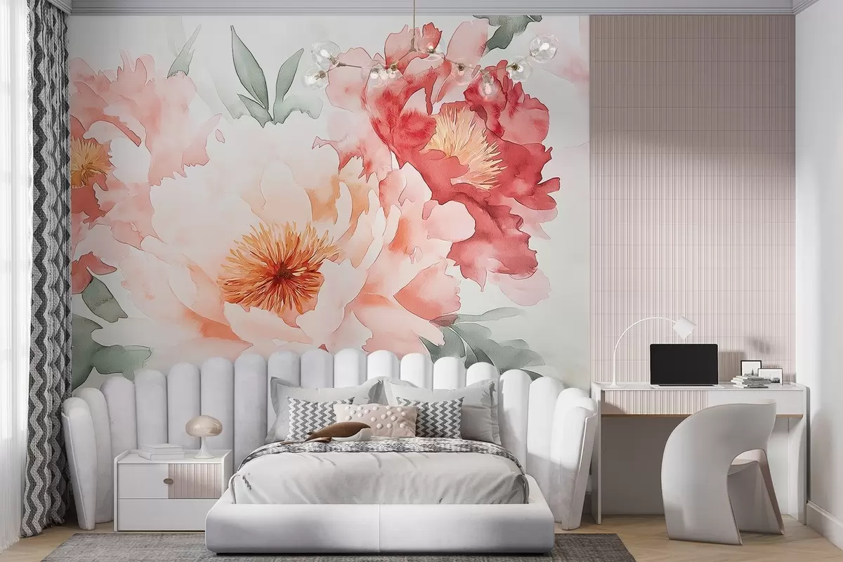 Fototapeten Große zarte Aquarellpfingstrosen N° w08571