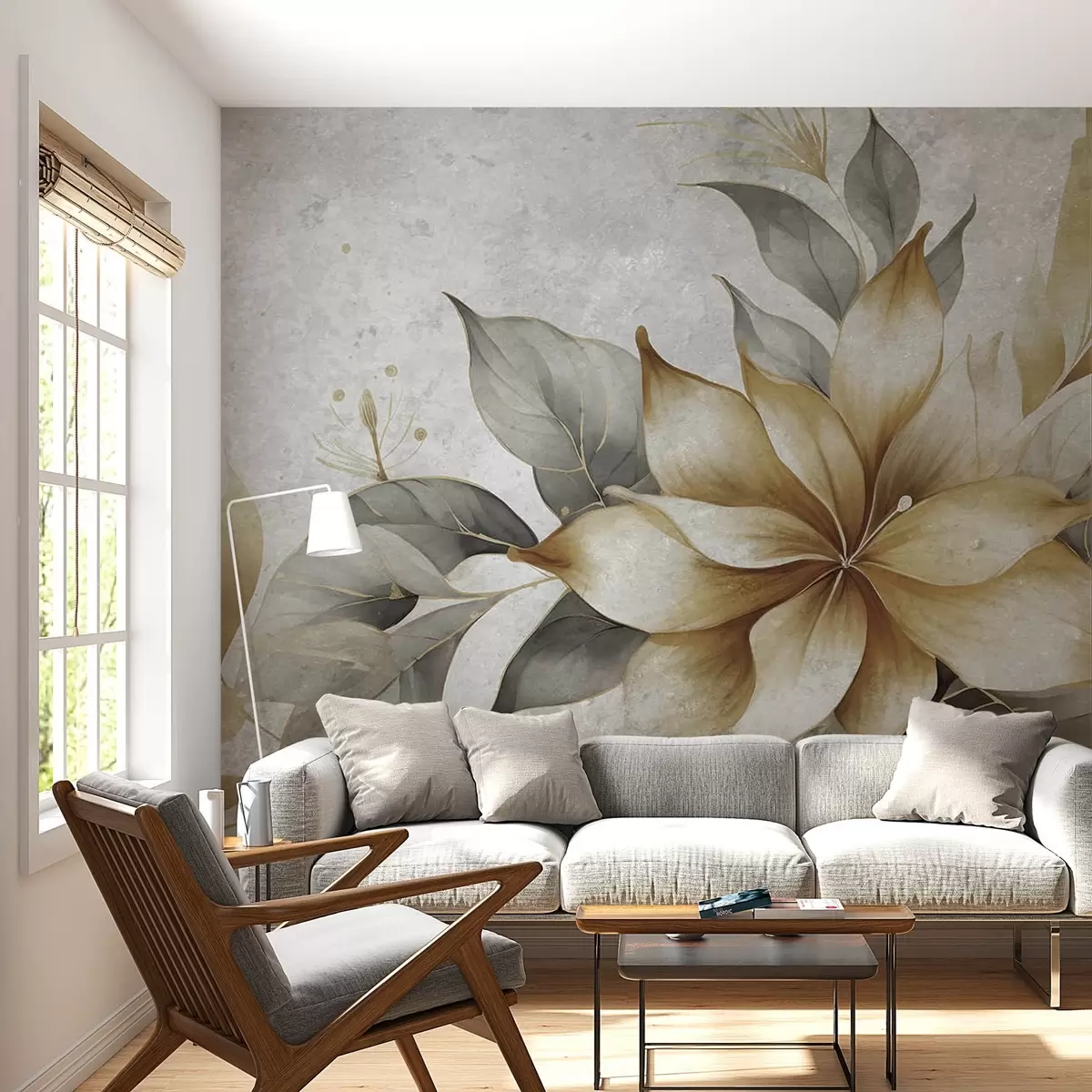 Fototapeten Blumenzweig auf einem Hintergrund aus Betonimitation N° w08623