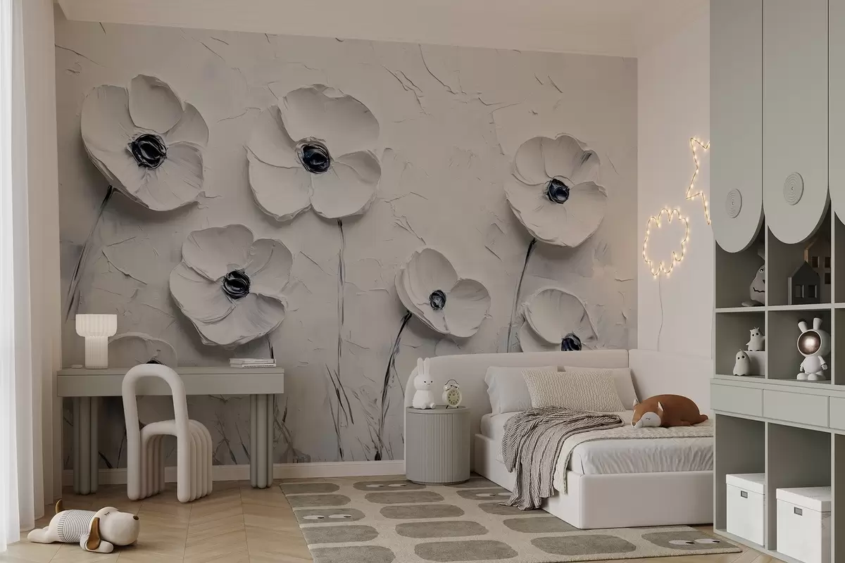 Fototapeten Elegante graue Blumen mit Pinselstrichimitation N° w08632