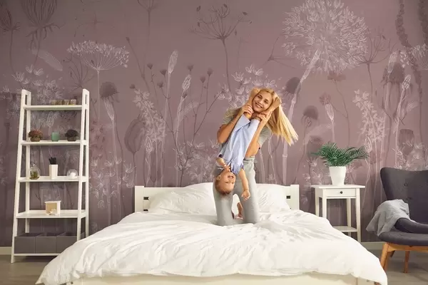 Fototapeten Luftige Pusteblumen und Wildblumen im Aquarellstil in Rosatönen N° w08637v1