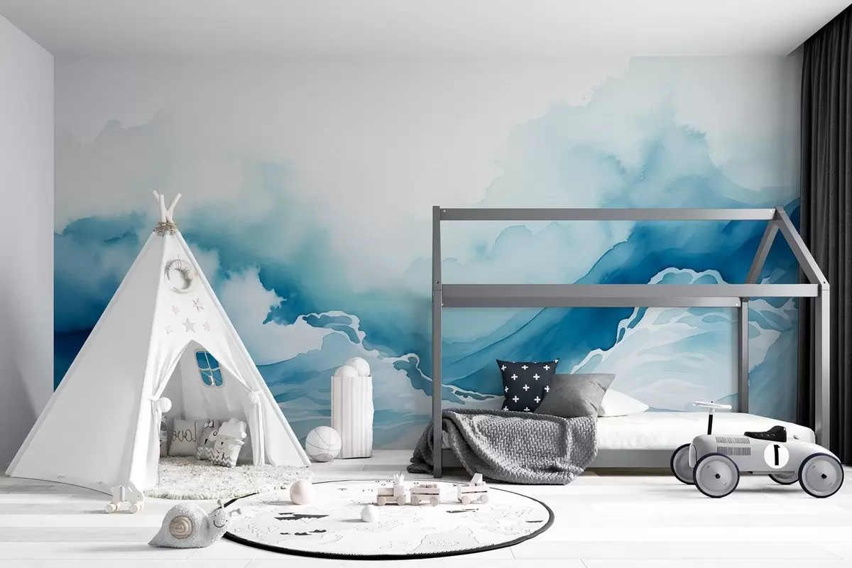 Fototapeten Meereswellen im Aquarellstil in Blautönen N° w08655