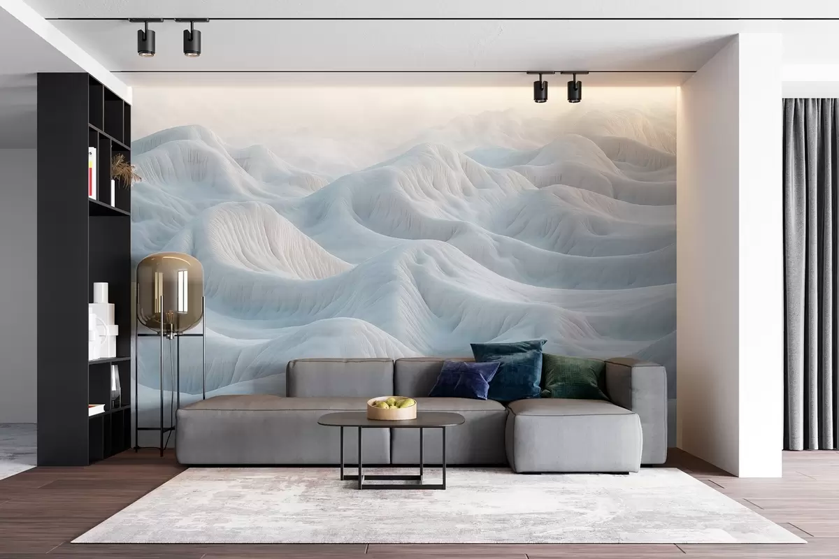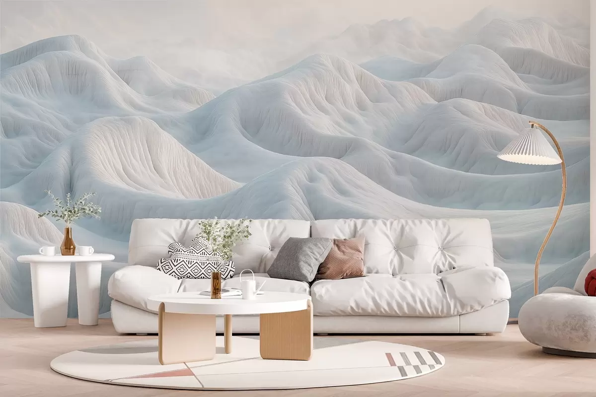 Fototapeten Blaue Landschaft mit sanften Hügeln und Dünen N° w08693