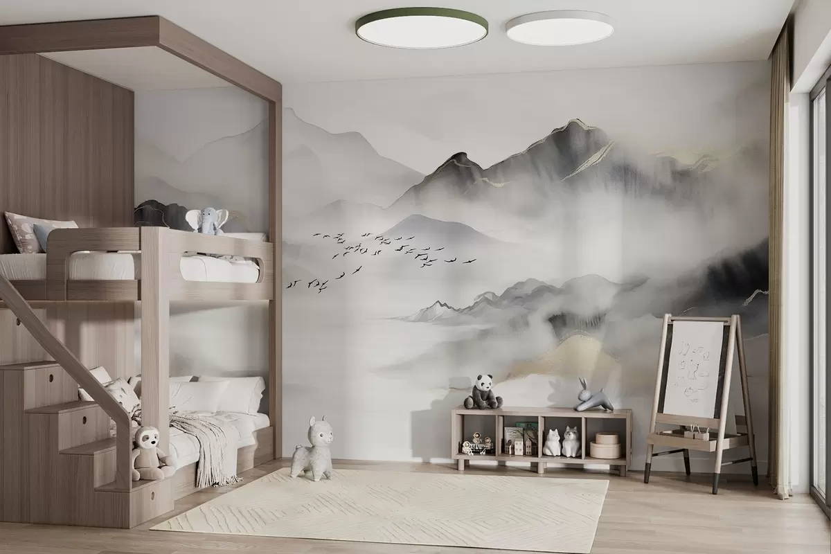 Fototapeten Zarte Berge im Nebel im Aquarellstil N° w08719