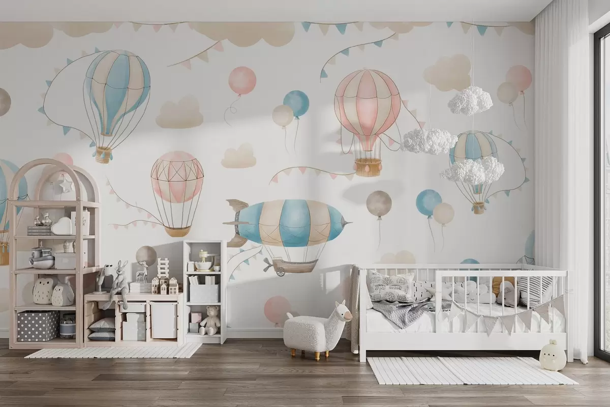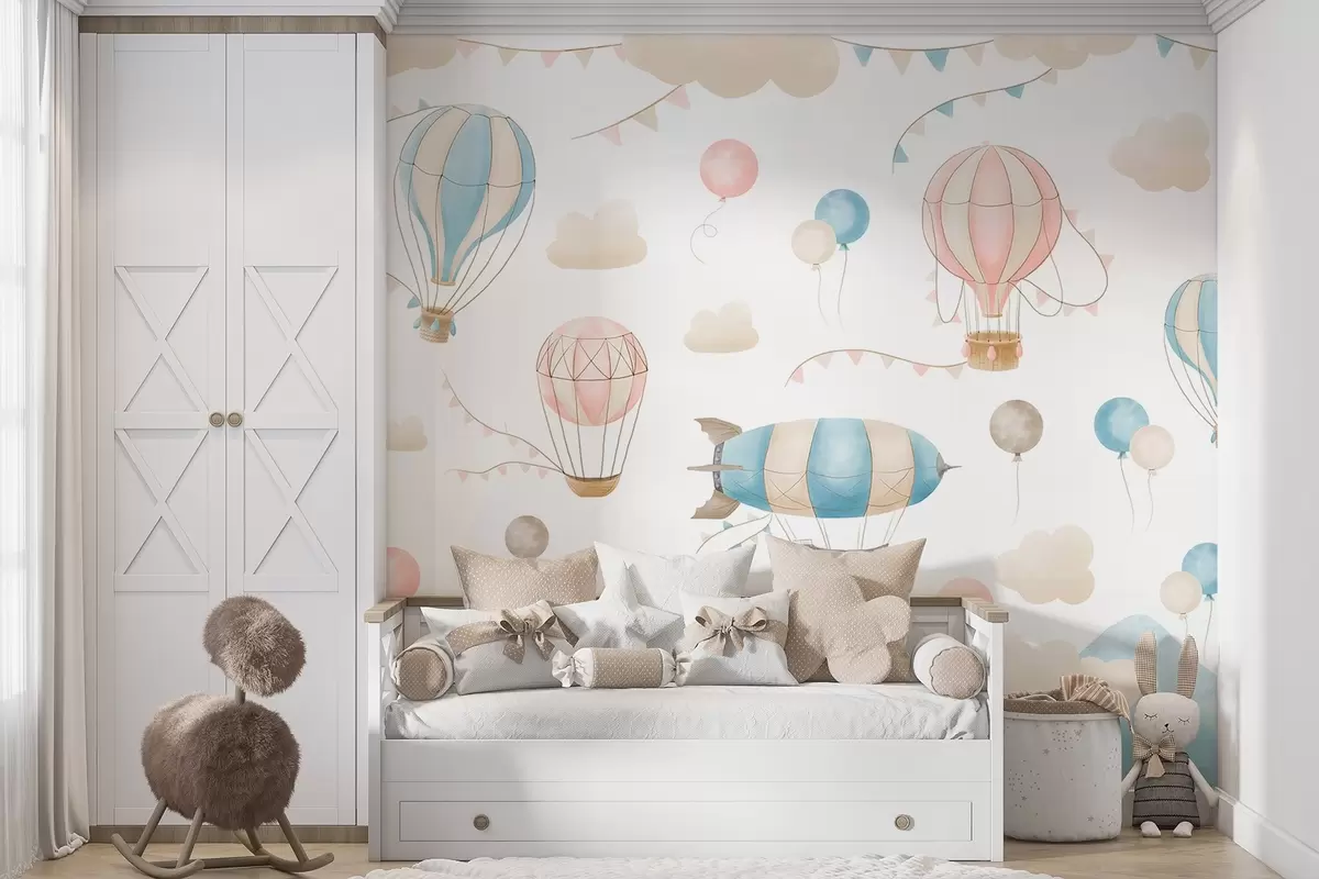 Fototapeten Kinder Aquarell Design mit Luftballons N° w08765