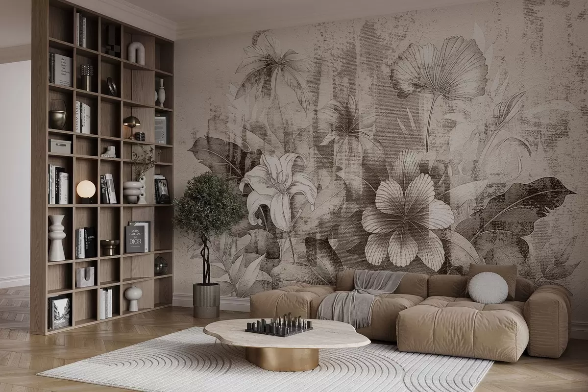 Fototapeten Vintage-Design mit exotischen Blumen und Pflanzen N° w08767v2