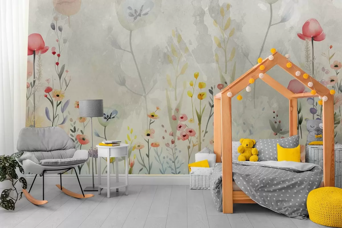 Fototapeten Wildblumen, Nachahmung eines Aquarellhintergrunds N° w08846