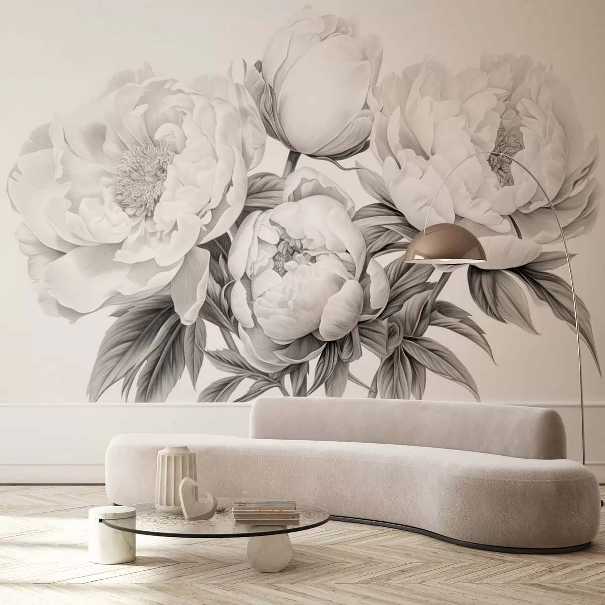 Fototapeten Schwarze und weiße Pfingstrosen im Stil einer Bleistiftzeichnung N° w08852