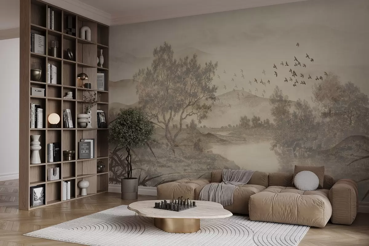 Sie können die Tapete sehr vorsichtig mit einem leicht feuchten Schwamm reinigen. Wir raten jedoch davon ab, die Tapete zu schrubben oder Reinigungsmittel zu verwenden, da dies die Oberfläche und die Farben der Tapete beschädigen kann.