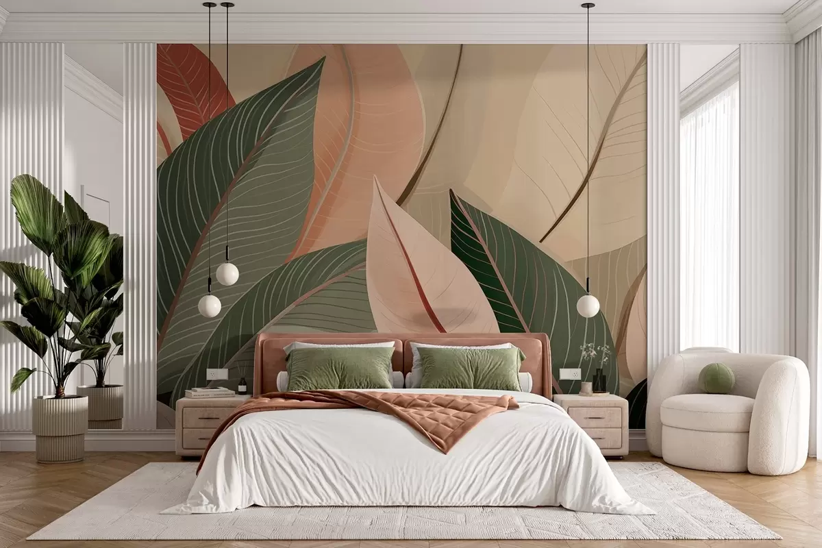Fototapeten Nahaufnahme von Blättern in Olivgrün und rosa-cremefarben N° w08944