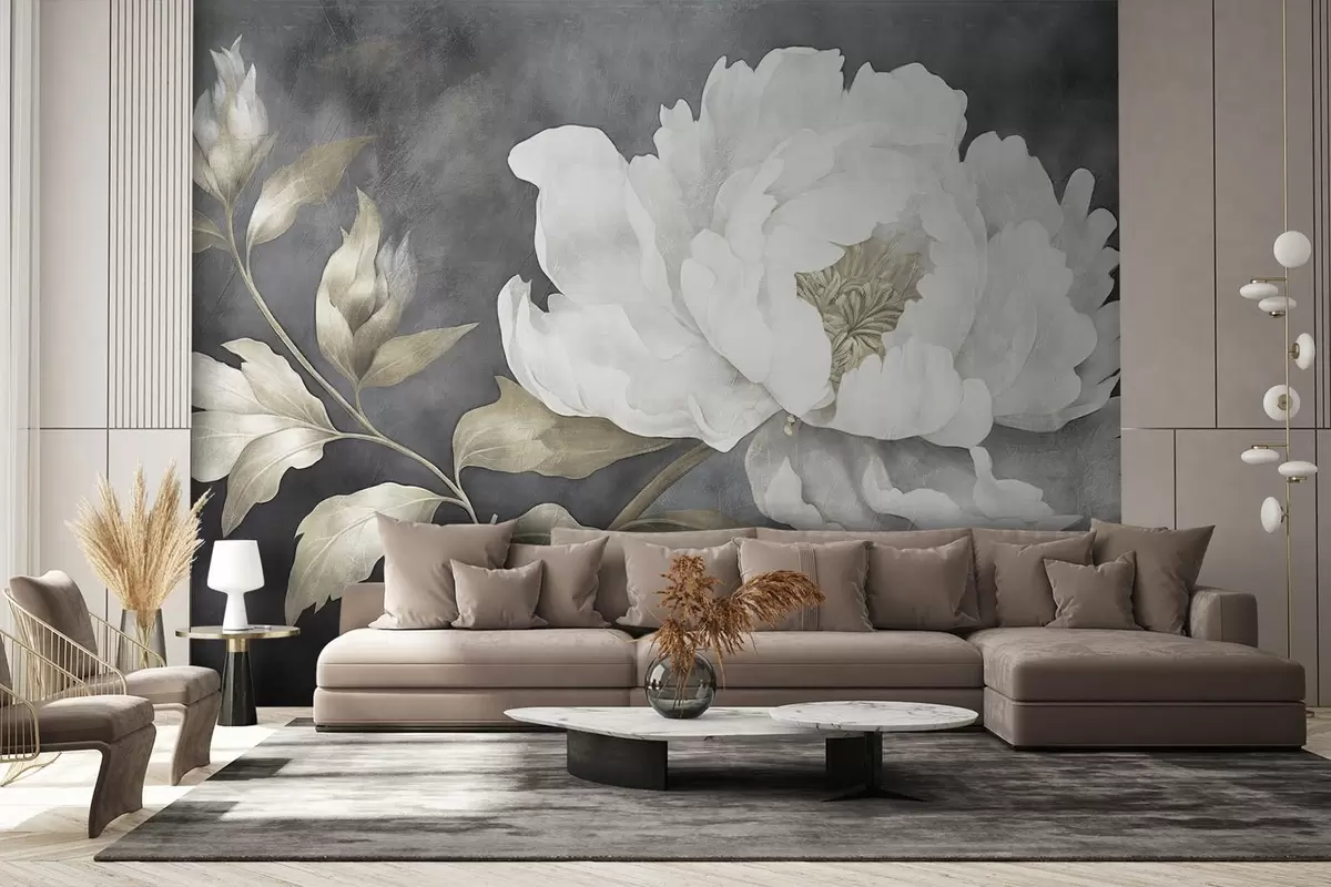 Fototapeten Große helle Blume auf einem dunklen, gealterten Hintergrund N° w08949