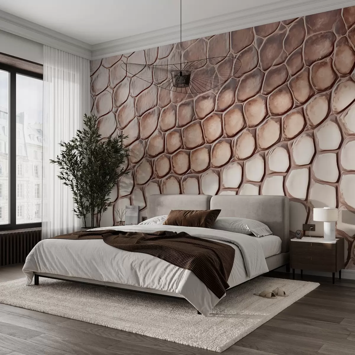 Fototapeten Weiß-braune Reptilienhaut, Schuppenmuster N° w08957