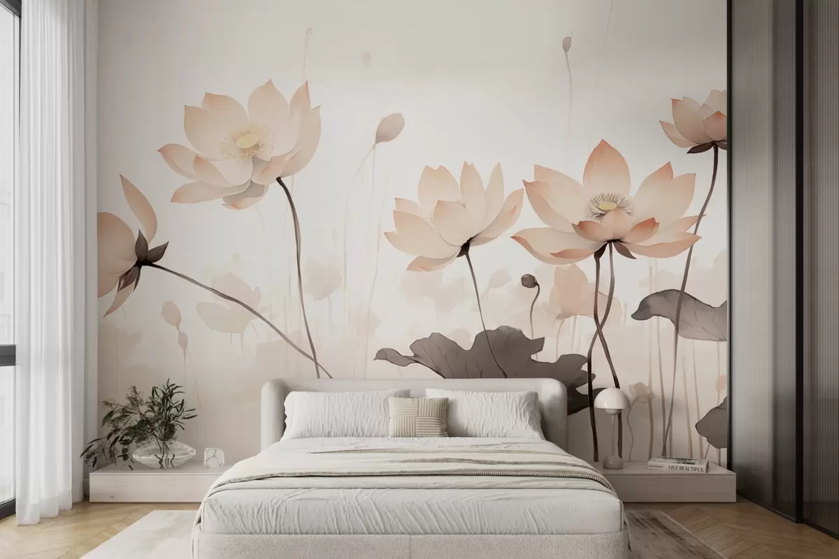 Fototapeten Seerosen in zarten hellen Tönen im Aquarellstil N° w09035