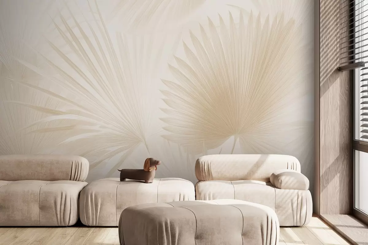 Fototapeten Weiche tropische Blattfächer auf einem hellen Hintergrund N° w09084v1