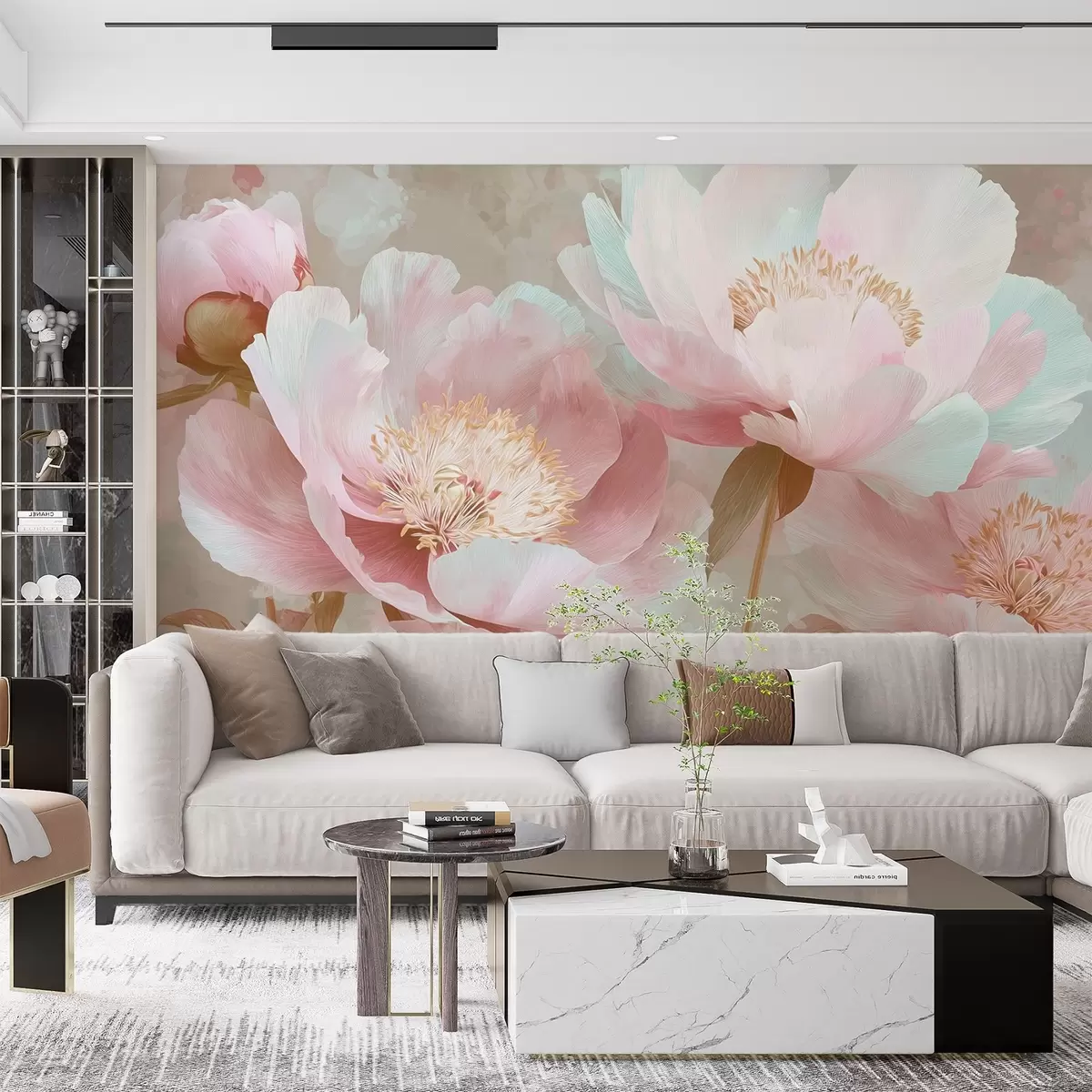 Fototapeten Zarte Pfingstrosen in Rosa- und Beigetönen N° w09087v1