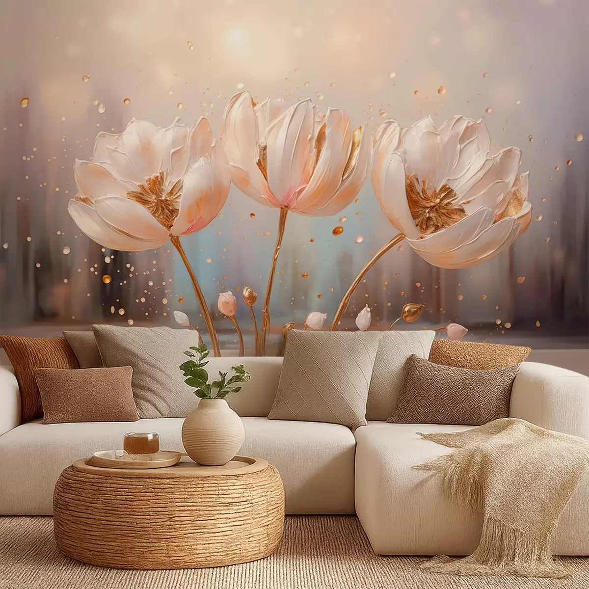 Fototapeten Zarte voluminöse Blüten bei Sonnenaufgang N° w09148