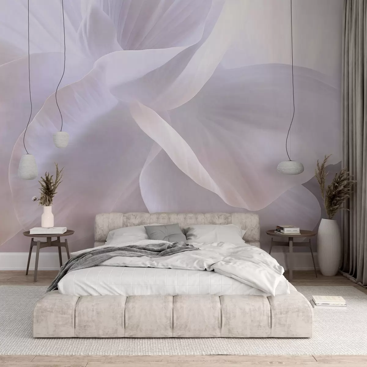 Fototapeten Abstrakte strukturierte Blume mit zarten Blütenblättern, weiche Beleuchtung, elegante Komposition, minimalistische Ästhetik N° w09211