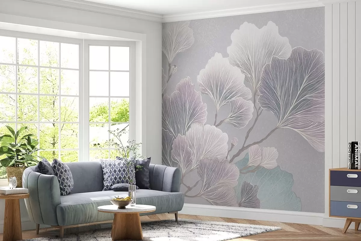 Fototapeten Zweig mit Blättern in blauen Farbtönen N° w09249v1