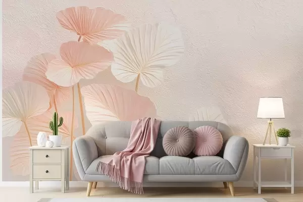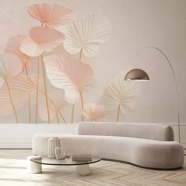 Fototapeten Elegante große tropische Blätter in zartrosa Farbe N° w09252v1
