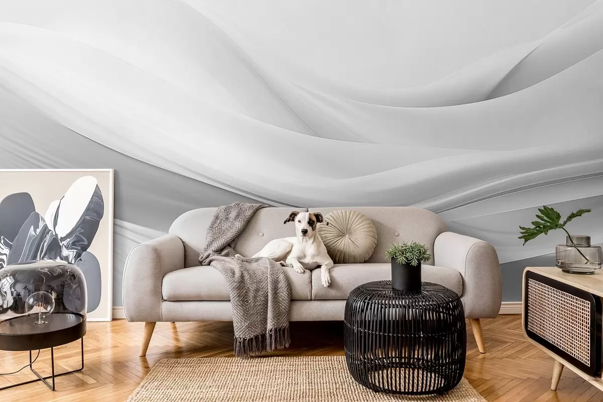 Fototapeten Graue Stoffwellen im minimalistischen abstrakten Stil N° w09279v1