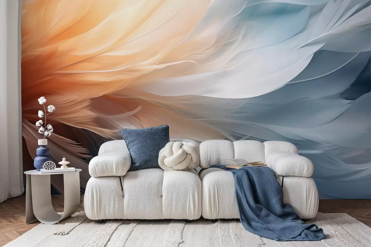 Fototapeten Zarte Federn in Orange- und Blautönen mit Farbverlauf N° w09282