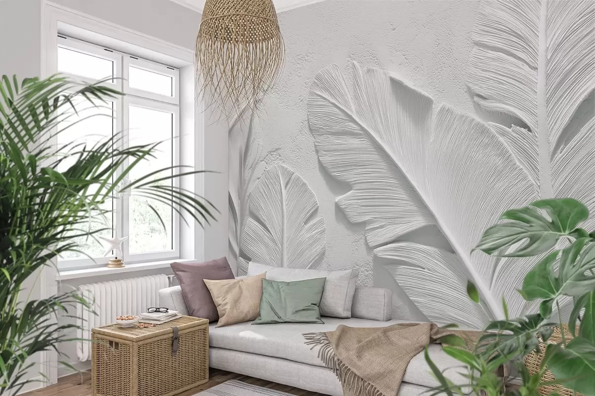Fototapeten Texturierte graue Blätter auf einem Hintergrund mit Kunstgipsrelief N° w09307