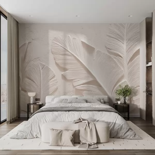 Fototapeten Reliefblätter in warmen Beige-Sand-Tönen N° w09307v1