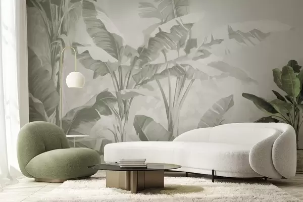Fototapeten Tropische Bananenblätter in sanften Grüntönen N° w09311v1