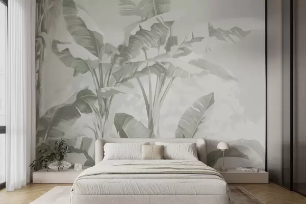 Fototapeten Tropische Bananenblätter in sanften Grüntönen N° w09311v1