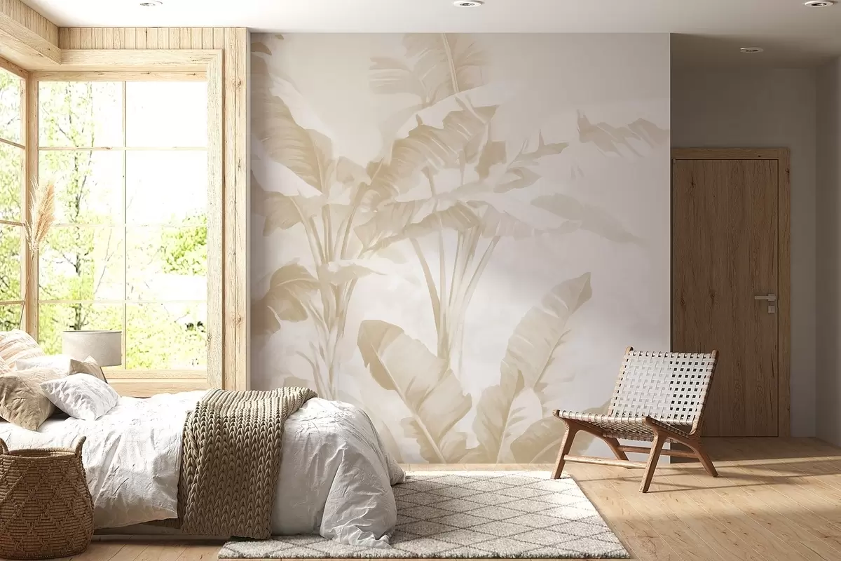 Fototapeten Tropische Bananenblätter in sanften Beigetönen N° w09311v2