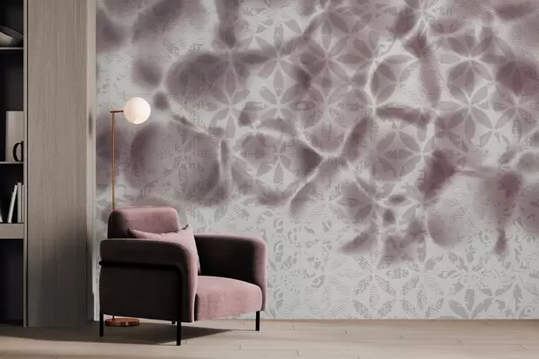 Fototapeten Abstraktes, strukturiertes Kunstwerk mit Blumendruck, verblasstem und verschwommenem Effekt, der eine weiche und verträumte Atmosphäre schafft N° w09322v1