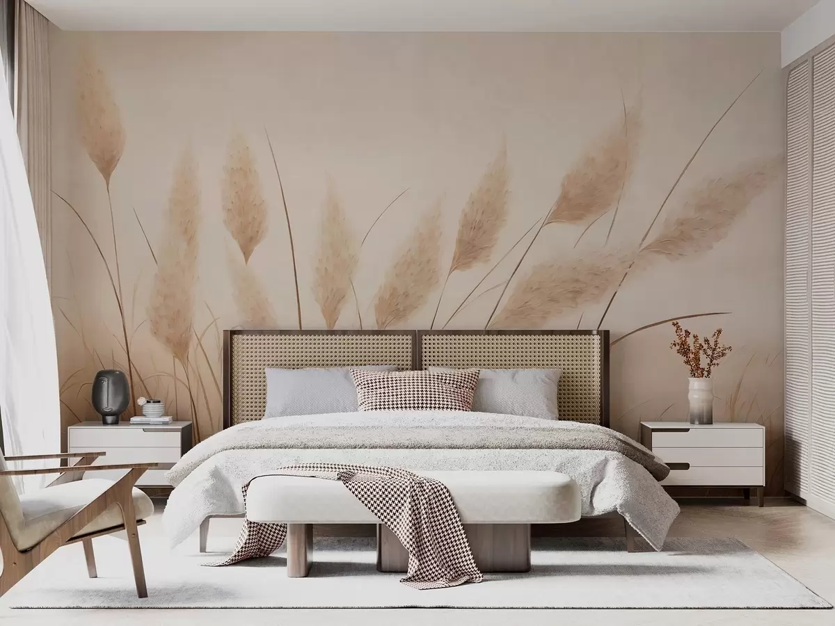 Fototapeten Weiches, beiges Pampasgras auf dem Feld N° w09324