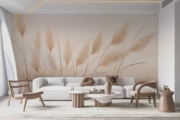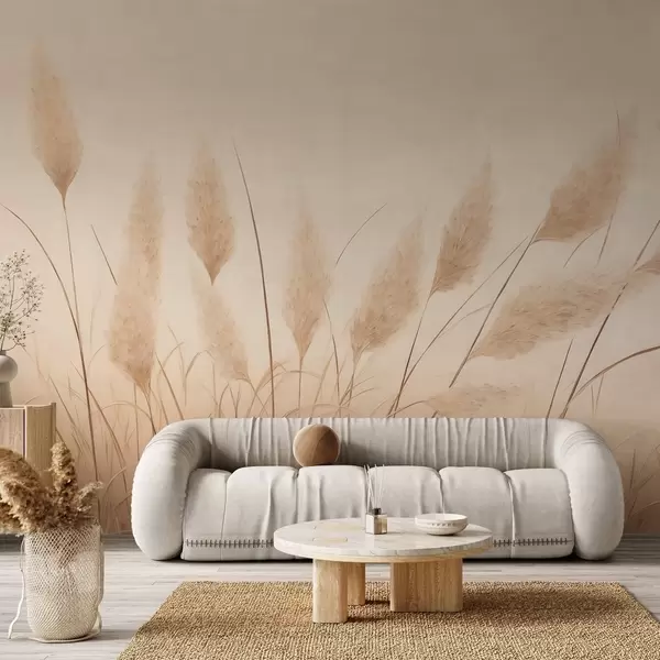 Fototapeten Weiches, beiges Pampasgras auf dem Feld N° w09324