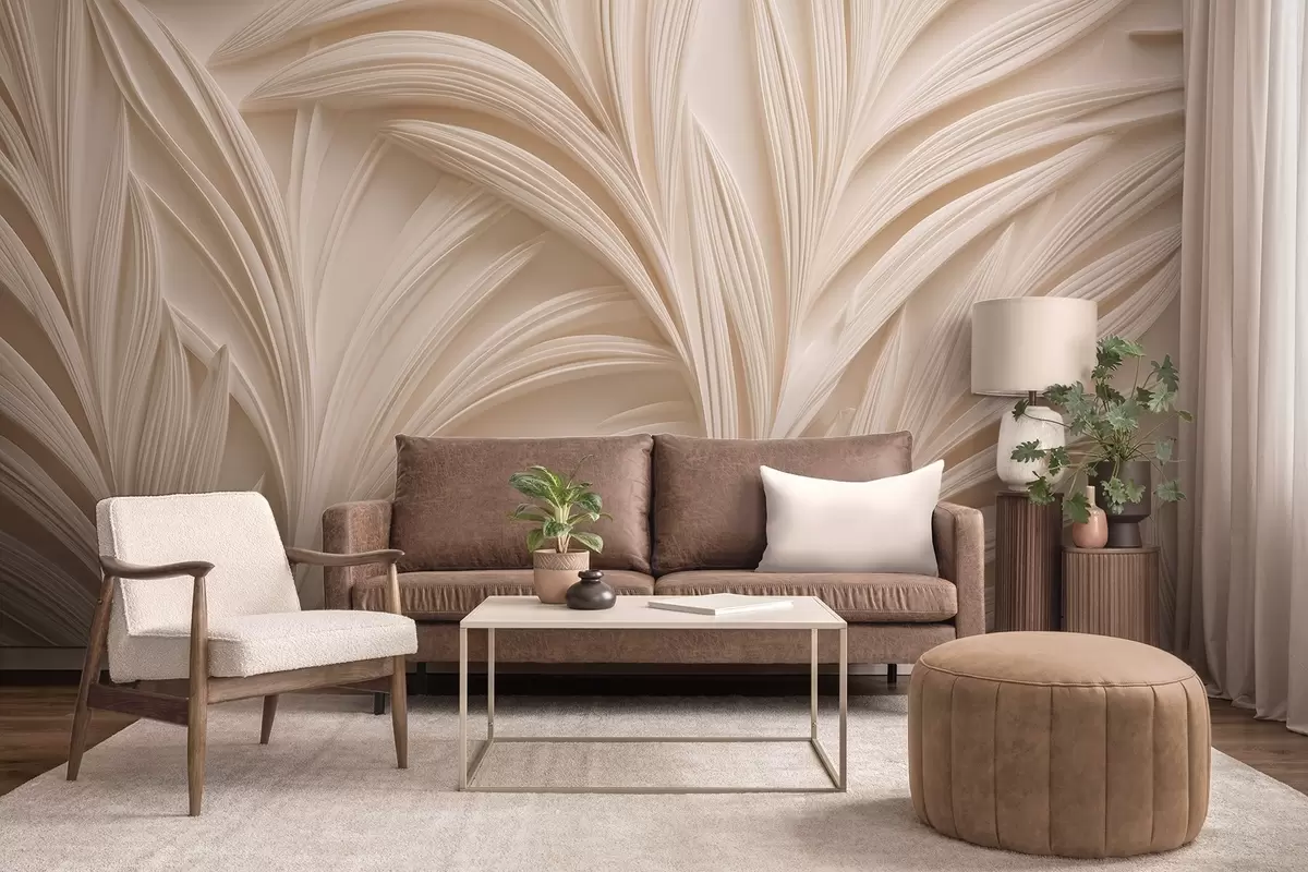 Fototapeten Dekorative beige Blätter im 3D-Stil N° w09351