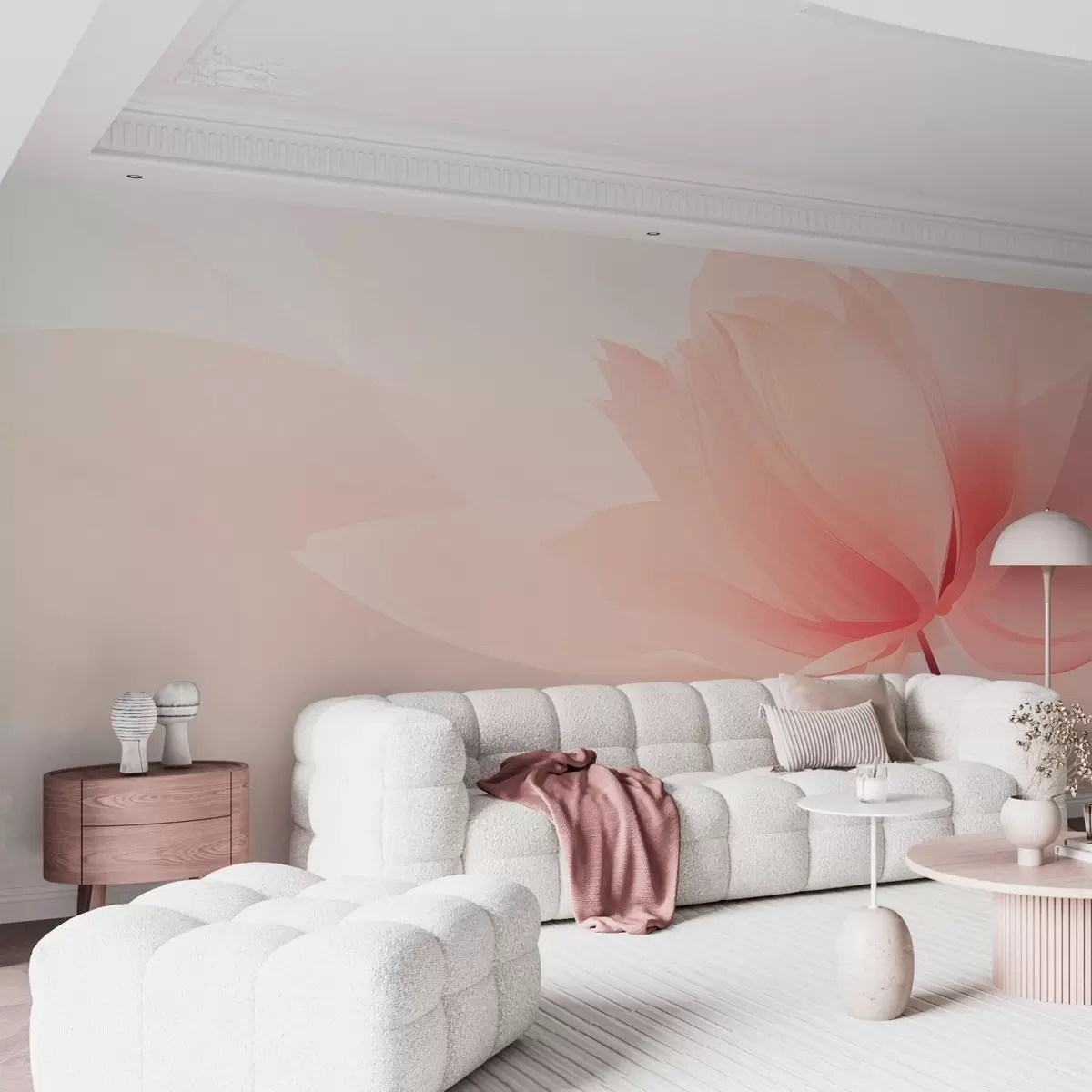 Fototapeten Große Blüte in zarten Pfirsich-Rosa-Tönen N° w09356