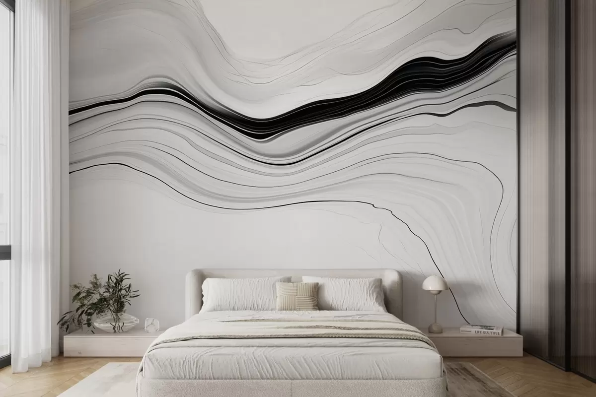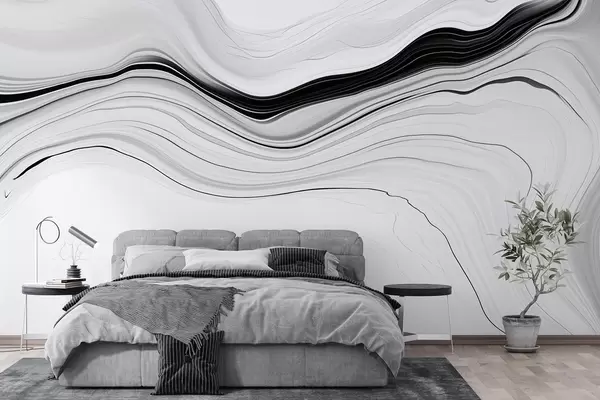 Fototapeten Schwarzes und weißes Muster mit dem Effekt von Marmorschichten N° w09358